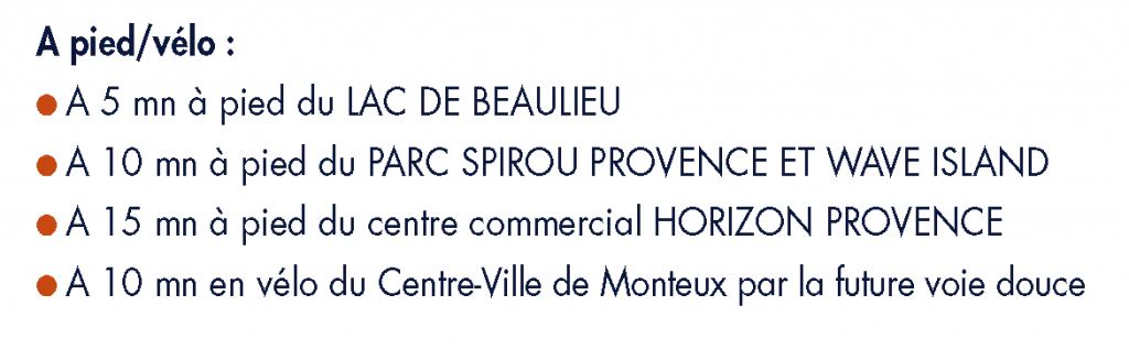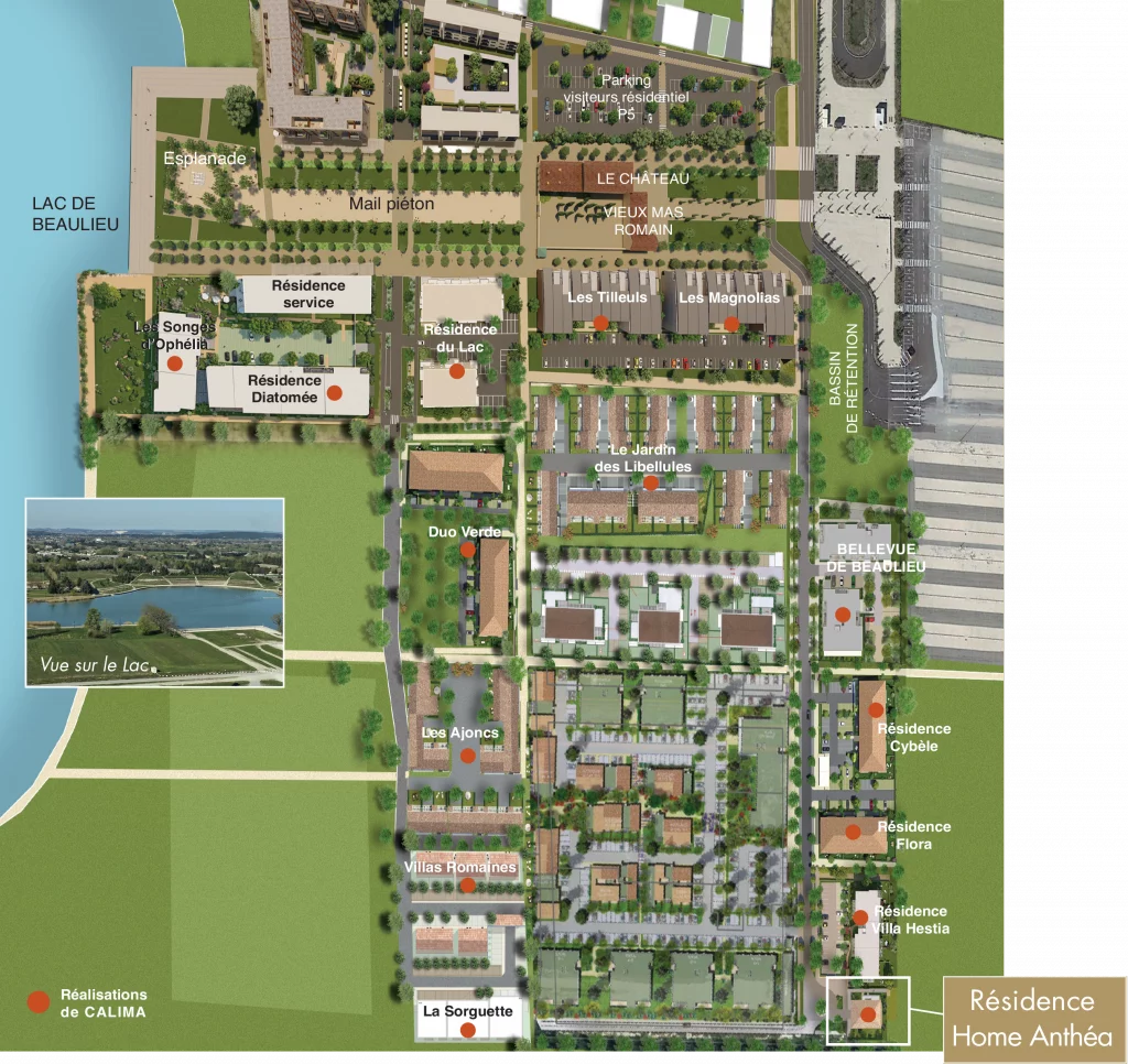 La résidence se trouve à seulement quelques pas du Lac. Vous y accèderez facilement en empruntant les voies douces, placettes aménagées et arborées, jusqu’à une esplanade donnant sur les berges du Lac, bordée de futurs commerces de proximité.